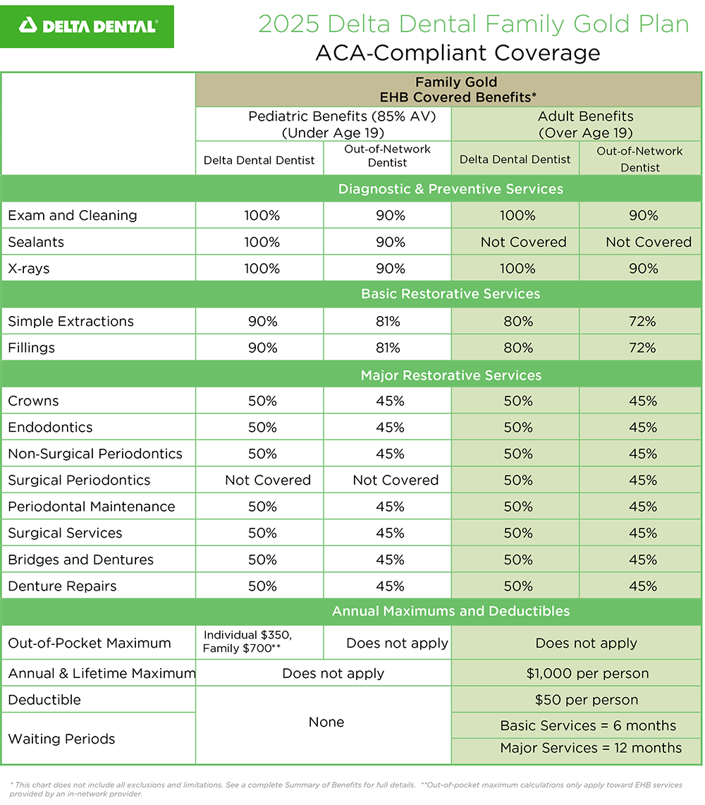 2025 Family Gold Plan EHB Covered Benefits